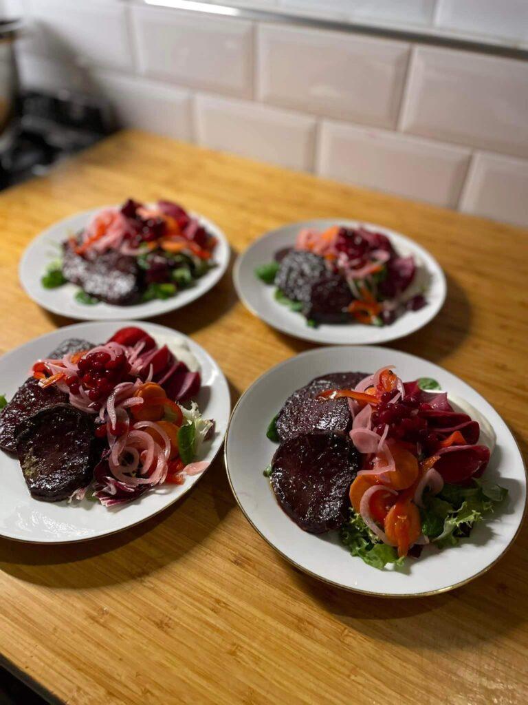 Kanapekonikakkua ja vihanneskakkua ja raikasta salaattia kauden kasviksista