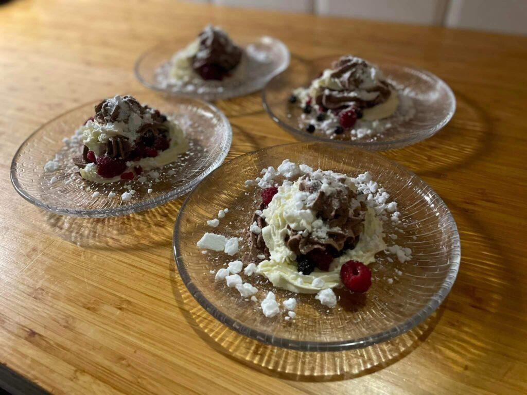 Pavlova poltetusta sokerista kera hauholaisen mansikan